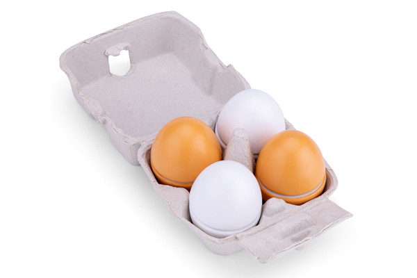 Gebakken, gekookt of gepocheerd? Hoe heeft u uw eitje het liefst bij het ontbijt? In dit schattige eierdoosje zitten zes houten eieren, drie witte en drie bruine. De helften zitten aan elkaar vast met klittenband. Wanneer u deze van elkaar afhaalt is de gele dooier te zien. De houten eieren hebben een afmeting van 5,5 cm.