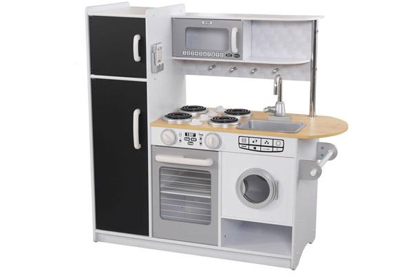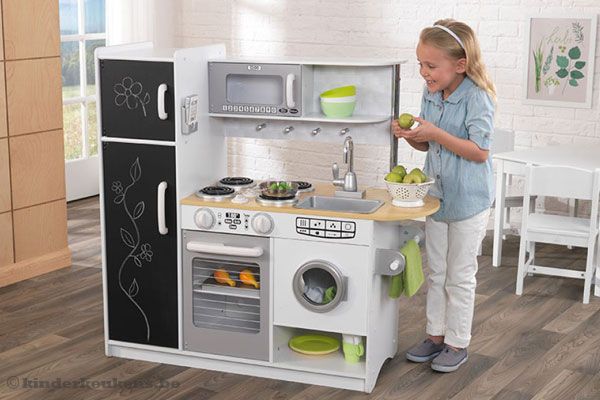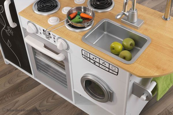 Met deze zeer complete Pepperpot keuken kunnen jonge kinderen zich gegarandeerd urenlang vermaken! Hij beschikt over een oventje, een magnetron, een uitneembare wasbak met kraan en heeft zelfs een wasmachine. Tevens is hij in het bezit van een draadloze telefoon, heeft hij een 4 pits gasfornuis en zijn de koelkast en het keukenkastje voorzien van blackboard. Hier kunnen kinderen lekker op schrijven of tekenen. Geschikt voor jongens en meisjes vanaf 3 jaar.